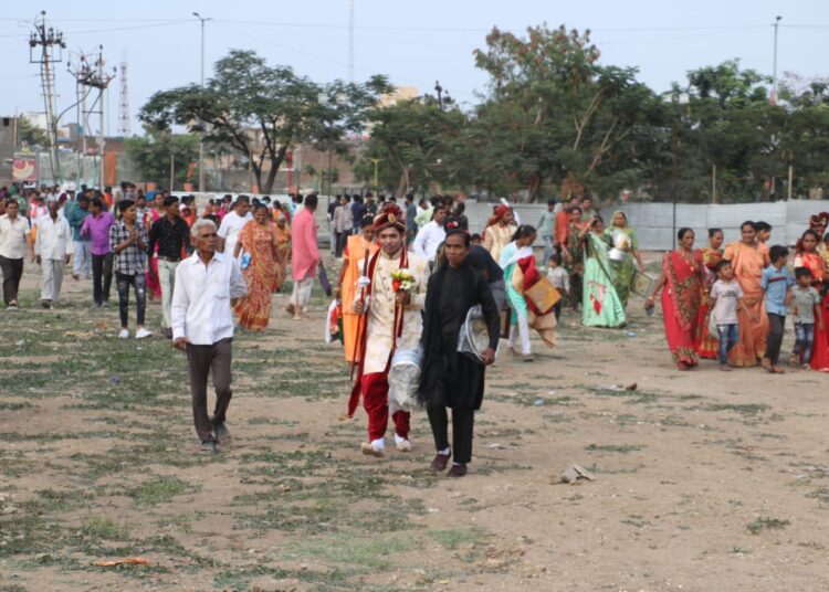 કડક બંદોબસ્તના કારણે વરરાજાઓનો વરઘોડો નહીં પણ પદયાત્રા