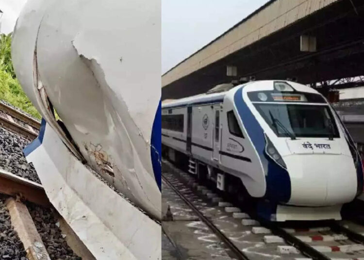 દેશના પ્રધાનમંત્રી નરેન્દ્ર મોદીએ એમપીની જે પ્રથમ વંદે ભારત એક્સપ્રેસ ટ્રેનને લીલીઝંડી બતાવી ગુરુવાર સાંજે શરુ કરાવી હતી, તે વંદે ભારત એક્સપ્રેસ ટ્રેન ગ્વાલિયરની નજીક દુર્ઘટનાનો શિકાર થઈ છે. નિઝામુદ્દીનથી કમલાપતિ સ્ટેશન તરફ જઈ રહેલી વંદે ભારત એક્સપ્રેસ ડબરા અને ગ્વાલિયરની વચ્ચે એક ગાય સાથે ટકરાઈ હતી. આ દુર્ઘટનામાં વંદે ભારત એક્સપ્રેસ ટ્રેનનું એન્જીન તૂટી ગયું હતું. ડબરા સ્ટેશન પાસે વંદે ભારત એક્સપ્રેસને રોકીને ટેક્નિકલ સ્ટાફે એન્જીનને રિપેર કર્યું હતું. લગભગ ૧૫ મીનિટ પછી વંદે ભારત એક્સપ્રેસ ભોપાલ તરફ રવાના થઈ હતી. નિઝામુદ્દીનથી કમલાપતિ તરફથી જઈ રહેલી સેમી હાઈ સ્પીડ ટ્રેન વંદે ભારત એક્સપ્રેસની સામે ગ્વાલિયર ભોપાલ ટ્રેક પર ડબરા સિમિરિયાતાલ સ્ટેશનની વચ્ચે એક ગાય આવી ગઈ. ફુલ સ્પિડે વંદે ભારત એક્સપ્રેસ ટ્રેન જ્યારે ગાય સાથે ટકરાઈ તો, ટ્રેનનું એન્જીન તૂટી ગયું. એન્જીનમાં ગાયના શરીરનો ભાગ ફસાઈ ગયો હતો. જેનાથી ટ્રેન એન્જીનનું બોનેટ ખુલી ગયું. દુર્ઘટના બાદ ડબરા સ્ટેશન પાસે વંદે ભારત એક્સપ્રેસ ટ્રેનને રોકી દેવામાં આવી. ફરી તેના એન્જીનને રિપેર કરવાનું કામ શરુ કર્યું. દુર્ઘટના બાદ વંદે ભારત એક્સપ્રેસ ટ્રેનને ડબરા સ્ટેશનથી પહેલા ઓવરબ્રિજની નીચે રોકવામાં આવી. ટ્રેનમાં રહેલા રનિંગ ટેક્નીકલ સ્ટાફે એન્જીનને રિપેર કરવાનું કામ શરુ કર્યું.