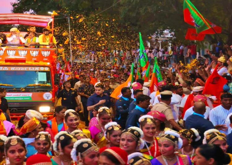 મૈસૂરમાં નરેન્દ્ર મોદીના રોડ શો દરમિયાન મહિલાએ ફૂલોની સાથે મોબાઈલ પણ ફેંકી દીધો