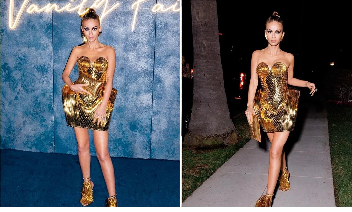 નતાશા પૂનાવાલાએ ઈન્સ્ટાગ્રામ પર ફરી એકવાર પોતાના લુકથી સોશિયલ મીડિયાની દુનિયામાં ખળભળાટ મચાવી દીધો છે. નતાશા પૂનાવાલાએ આ વર્ષે અરીસાથી બનેલો શિયાપેરેલી ગાઉન પહેર્યો હતો. નતાશાએ બિલાડીનો લુક કેરી કર્યો હતો, સિલ્વર રંગના ડ્રેસનો આગળનો ભાગ બિલાડીના કાનની જેમ ડિઝાઇન કરવામાં આવ્યો છે.