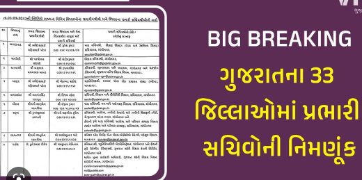 પ્રભારી સચિવ તરીકે રાજ્ય સરકારે વિવિધ સિનિયર અધિકારીઓને જવાબદારી સોંપી છે. તમામ 33 જિલ્લાઓમાં પ્રભારી સચિવો તરીકે નિમણૂક કરાઈ છે.