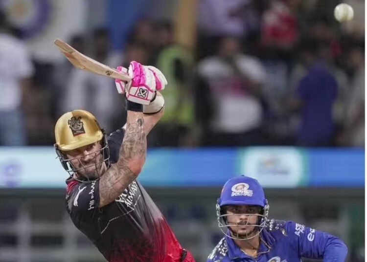 IPL 2023 ની 54મી મેચમાં મુંબઈ ઈન્ડિયન્સે રોયલ ચેલેન્જર્સ બેંગ્લોરને 6 વિકેટે હરાવ્યું. મુંબઈના વાનખેડે સ્ટેડિયમમાં રમાયેલી આ મેચમાં MIએ ટોસ જીતીને પ્રથમ બોલિંગ કરવાનું પસંદ કર્યું હતું. પ્રથમ બેટિંગ કરતા RCBએ 20 ઓવરમાં 6 વિકેટ ગુમાવીને 199 રન બનાવ્યા હતા. કેપ્ટન ફાફ ડુપ્લેસિસ અને ગ્લેન મેક્સવેલે અડધી સદી ફટકારી હતી. જવાબમાં મુંબઈએ 16.3 ઓવરમાં 4 વિકેટ ગુમાવીને 200 રન બનાવ્યા અને 6 વિકેટે મેચ જીતી લીધી. સૂર્યકુમાર યાદવે 35 બોલમાં 83 રનની તોફાની ઇનિંગ રમી હતી. આ દરમિયાન તેણે 7 ફોર અને 6 સિક્સર ફટકારી હતી. મેચ બાદ આરસીબીના કેપ્ટન ફાફ ડુ પ્લેસિસે પણ સૂર્યાની બેટિંગના વખાણ કર્યા હતા.