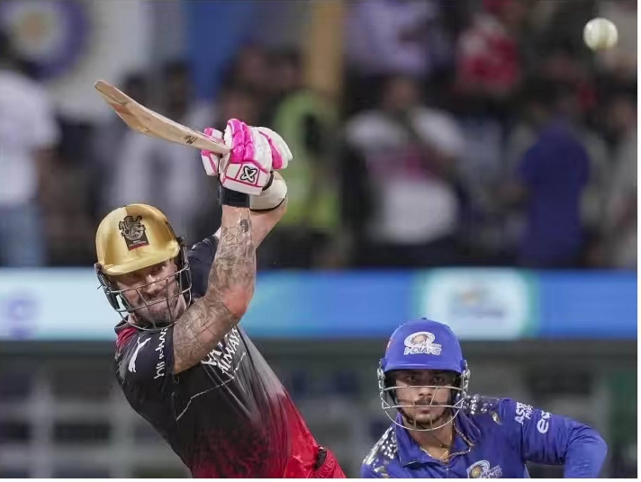 IPL 2023 ની 54મી મેચમાં મુંબઈ ઈન્ડિયન્સે રોયલ ચેલેન્જર્સ બેંગ્લોરને 6 વિકેટે હરાવ્યું. મુંબઈના વાનખેડે સ્ટેડિયમમાં રમાયેલી આ મેચમાં MIએ ટોસ જીતીને પ્રથમ બોલિંગ કરવાનું પસંદ કર્યું હતું. પ્રથમ બેટિંગ કરતા RCBએ 20 ઓવરમાં 6 વિકેટ ગુમાવીને 199 રન બનાવ્યા હતા. કેપ્ટન ફાફ ડુપ્લેસિસ અને ગ્લેન મેક્સવેલે અડધી સદી ફટકારી હતી. જવાબમાં મુંબઈએ 16.3 ઓવરમાં 4 વિકેટ ગુમાવીને 200 રન બનાવ્યા અને 6 વિકેટે મેચ જીતી લીધી. સૂર્યકુમાર યાદવે 35 બોલમાં 83 રનની તોફાની ઇનિંગ રમી હતી. આ દરમિયાન તેણે 7 ફોર અને 6 સિક્સર ફટકારી હતી. મેચ બાદ આરસીબીના કેપ્ટન ફાફ ડુ પ્લેસિસે પણ સૂર્યાની બેટિંગના વખાણ કર્યા હતા.
