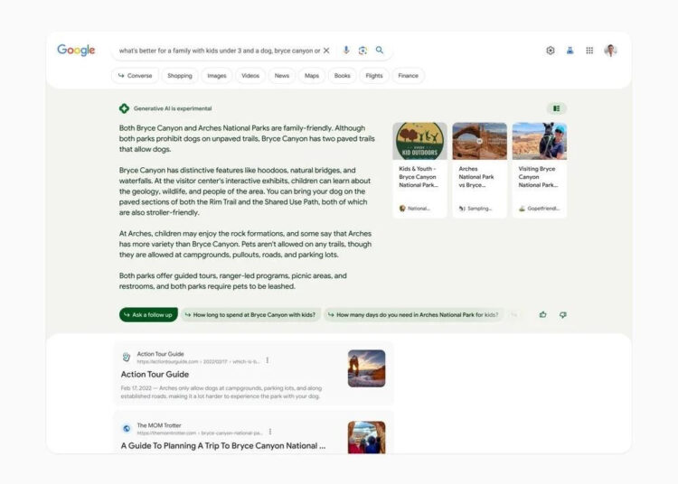 જનરેટિવ એઆઈના ઇન્ટિગ્રેશન પછી પણ, ગૂગલ પહેલા જેવું જ દેખાશે, પરંતુ જેમ તમે થોડું સર્ચ કરશો. તેનું પરિણામ એક નવો એક્સપિરિયન્સ પ્રોવાઇડ કરશે. અત્યારે તમે થોડું સર્ચ કરશો તો ગૂગલનું રિઝલ્ટ પેજ દેખાય છે, પરંતુ આવનારા દિવસોમાં તમને તેની સાથે AI રિસ્પોન્સ પણ જોવા મળશે.