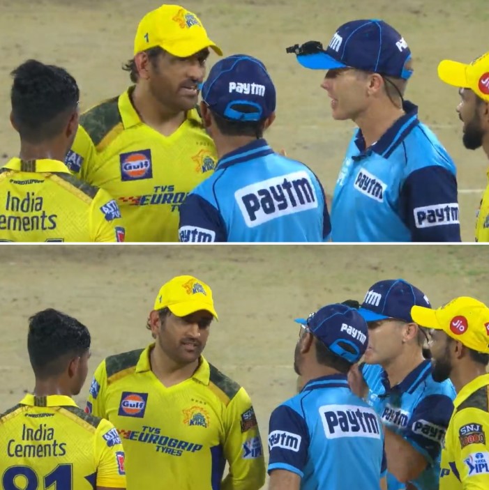 GT અને CSK વચ્ચે રમાયેલી મેચને લગભગ 4 મિનિટ માટે રોકી દેવામાં આવી હતી. આ દરમિયાન ચેન્નાઈ સુપર કિંગ્સના કેપ્ટન મહેન્દ્રસિંહ ધોની અને તેમની ટીમના કેટલાક ખેલાડીઓ અમ્પાયર સાથે વાત કરતા જોવા મળ્યા હતા. હકીકતમાં ગુજરાત ટાઈટન્સની ઈનિંગની 15મી ઓવર પૂરી થયા બાદ મહેન્દ્રસિંહ ધોની ફાસ્ટ બોલર મથીશા પથિરાના પાસે બોલિંગ કરાવવા માંગતા હતા. પરંતુ અમ્પાયરે પથિરાનાને બોલિંગ કરવાનો ઈનકાર કરી દીધો. આની પાછળ અમ્પાયરે જણાવ્યું હતું કે, મથીશા પથિરાના 8 મિનિટ કરતા સમયથી મેદાનની બહાર હતો.