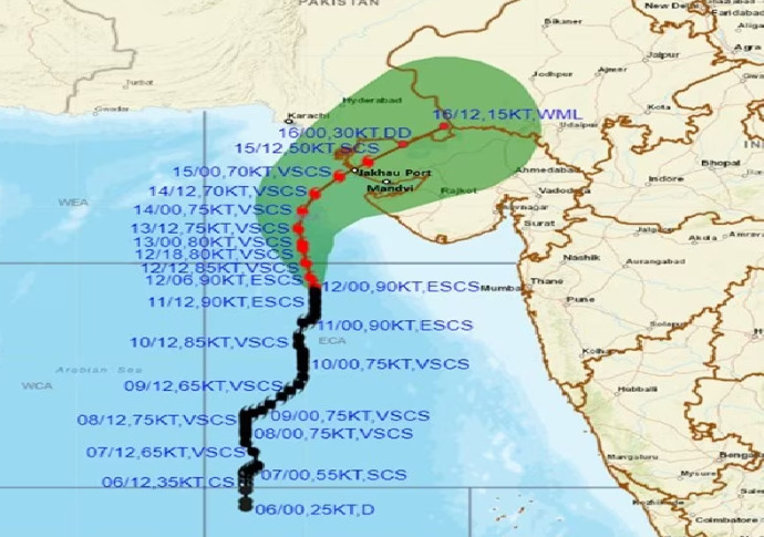 IMDના અપડેટ મુજબ, મંગળવારે બિપરજોય ગુજરાતના પોરબંદર કિનારેથી લગભગ 290 કિમી દૂર અરબી સમુદ્રમાં છે. તે 15 જૂનની સાંજ સુધીમાં ગુજરાતના માંડવી અને પાકિસ્તાનના કરાચી વચ્ચે સૌરાષ્ટ્ર અને કચ્છને પાર કરે તેવી સંભાવના છે. IMDએ કચ્છથી લઈને મુંબઈ સુધી એલર્ટ જાહેર કર્યું છે.