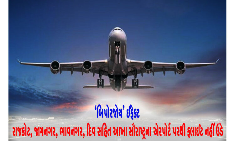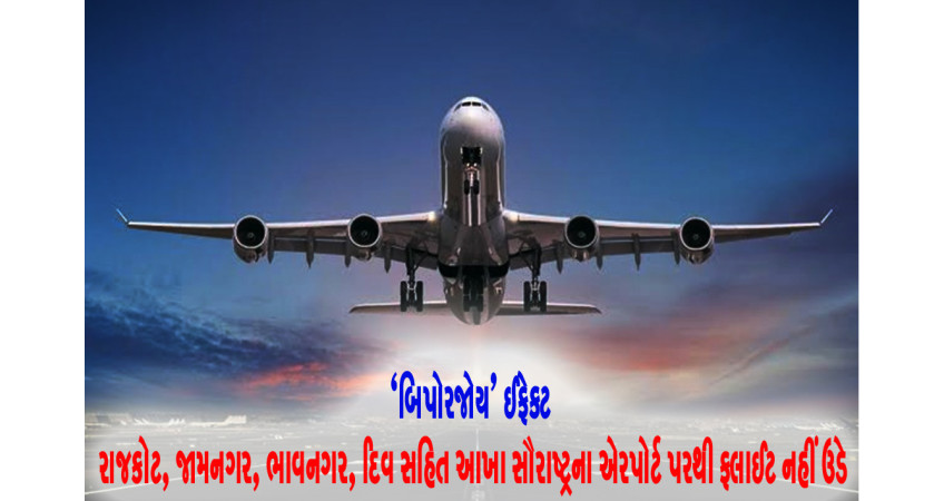 આખા સૌરાષ્ટ્ર ઉપર ‘બિપરજોય’ નામની વાવાઝોડારૂપી કુદરતી આફત ઝળુંબી રહી છે અને આ વાવાઝોડું ગમે ત્યારે સૌરાષ્ટ્ર ઉપર ત્રાટકે તેવી શક્યતાને ધ્યાનમાં રાખી તંત્ર દ્વારા સલામતિના તમામ પગલાંઓ ઉઠાવવામાં આવી રહ્યા છે. વાવાઝોડાની સ્થિતિને ધ્યાનમાં રાખી સૌરાષ્ટ્રના તમામ એરપોર્ટ રાજકોટ ઉપરાંત જામનગર, ભાવનગર, પોરબંદર, ભૂજ, દિવ ઉપર આજે એક પણ ફ્લાઈટ ઉડાન નહીં ભરનાર હોવાનું જાણવા મળી રહ્યું છે.