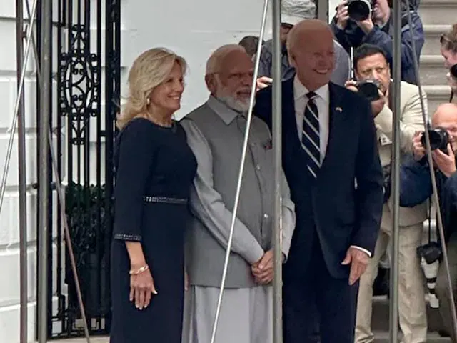 અમેરિકામાં વડાપ્રધાન નરેન્દ્ર મોદીના સન્માનમાં ગુરુવારે સ્ટેટ ડિનરમાં દક્ષિણ લૉન પર મહેમાનોને શુદ્ધ શાકાહારી ભોજન પીરસવામાં આવ્યું હતું. બરછટ અનાજમાંથી બનાવેલ ખોરાક, ખાસ કરીને બાજરી, કોર્ન કર્નલ સલાડ અને સ્ટફ્ડ મશરૂમ્સ પણ તેમાં પીરસવામાં આવ્યા હતા. આ સ્ટેટ ડિનરમાં ભારત અને અમેરિકાના 400 દિગ્ગજોને આમંત્રણ આપવામાં આવ્યું હતું. ઉદ્યોગપતિ મુકેશ અંબાણી, નીતા અંબાણી પણ સામેલ હતા. આનંદ મહિન્દ્રા, સત્યા નડેલા, અરિંદમ બાગચી પણ સામેલ હતા. ભારતીય મુળના ફિલ્મ દિગ્દર્શક મનોજ શ્યામલન પણ હતા સામેલ. ઇન્દ્રા નૂયી, દિપક મિત્તલ સહિતની હસ્તીઓ સામેલ રહી.