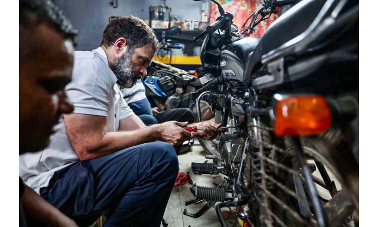 ગેરેજમાં બાઈક રિપેર કરતા જોવા મળ્યા રાહુલ ગાંધી!
