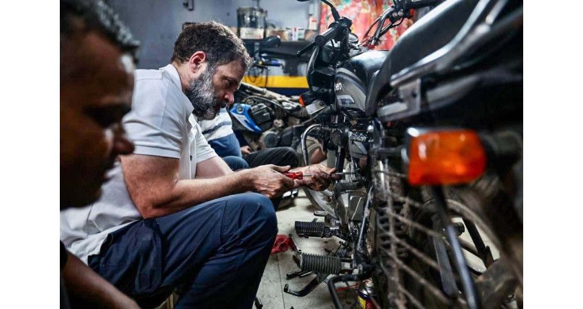 ગેરેજમાં બાઈક રિપેર કરતા જોવા મળ્યા રાહુલ ગાંધી!