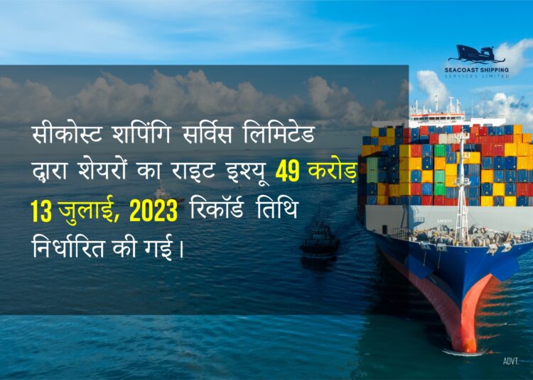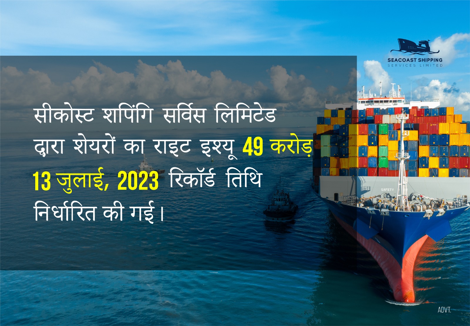 સીકોસ્ટ શિપિંગ સર્વિસિસ લિમિટેડ (Seacoast Shipping Services Limited) મૂડી એકત્ર કરવા અને તેની નાણાકીય સ્થિતિને વધુ મજબૂત કરવા માટે ઇક્વિટી શેરનો રાઇટ ઇશ્યૂ હાથ ધરવાના નિર્ણયની જાહેરાત કરતાં ખુશ છે. સંપૂર્ણ પેઇડ-અપ ઇક્વિટી શેરના ઇશ્યૂ અને ફાળવણી માટે રૂ. 1/- દરેક (ઇક્વિટી શેર્સ) કંપનીના પાત્ર ઇક્વિટી શેરધારકોને અધિકારોના આધારે બોર્ડ ઓફ ડિરેક્ટર્સે ડ્રાફ્ટ લેટર ઑફ ઑફર (DLOF)ને મંજૂરી આપી છે.