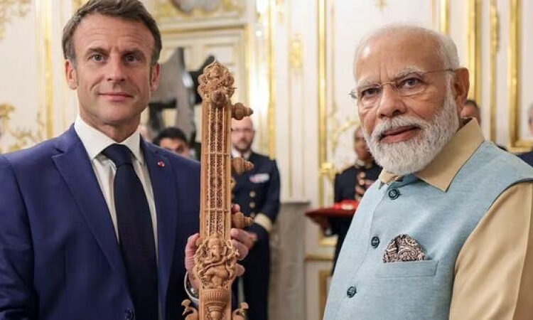 મોદીએ ફ્રાન્સના રાષ્ટ્રપતિને સુખડની સિતાર ભેટ આપી