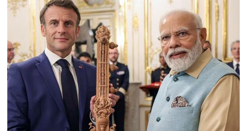 મોદીએ ફ્રાન્સના રાષ્ટ્રપતિને સુખડની સિતાર ભેટ આપી